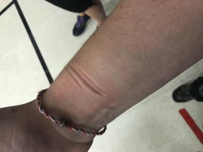 He showed how he would approach a suspect from behind and grip by the elbow. Then twist their wrist to make them off-balance, and that’s when you slap the cuffs on. We took turns handcuffing each other, which isn’t as easy as it looks. When I was handcuffed, my partner put my cuffs on a little too tight. That metal isn’t the most comfortable bracelet to wear.