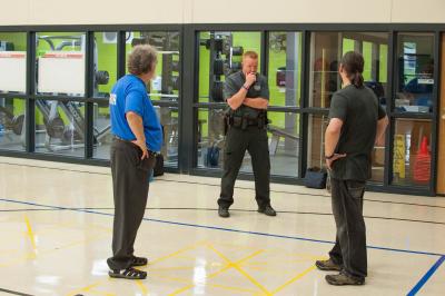 fourth class: defense and arrest tactics with officer john. I got to be the demo person and be restrained by the cop.